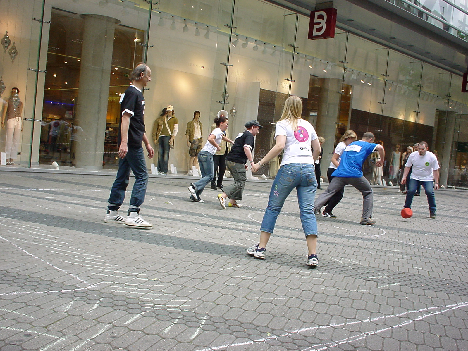 Wanderausstellung 2006 der Fachgruppe Bildende Kunst in ver.di Bayern, mit Gästen und jeweiligem gemischten Vorspiel der Fussball-mässigen Art