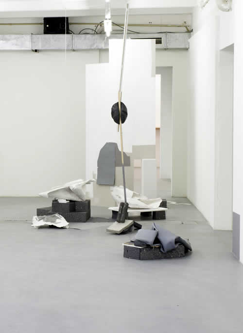 Was geschieht zwischen zwei Atemzügen? Gibt es eine Ruhe gleichzeitig vor und nach dem Sturm? Durch konzentriertes Aneinanderfügen, Stellen und Lehnen, Montieren, Stecken, Kleben, Beschweren, Bemalen, scheinbar unvereinbarer Materialien wie Holz, Styropor, Gummi, Porzellan und Gips, Papier und Schnüre schafft Partelli in der so neu strukturierten Architektur ein brüchiges Equilibrium, eine verlängerte Momentaufnahme, das die Reflexion über die eigene Position und Bewegung im Raum fordert.