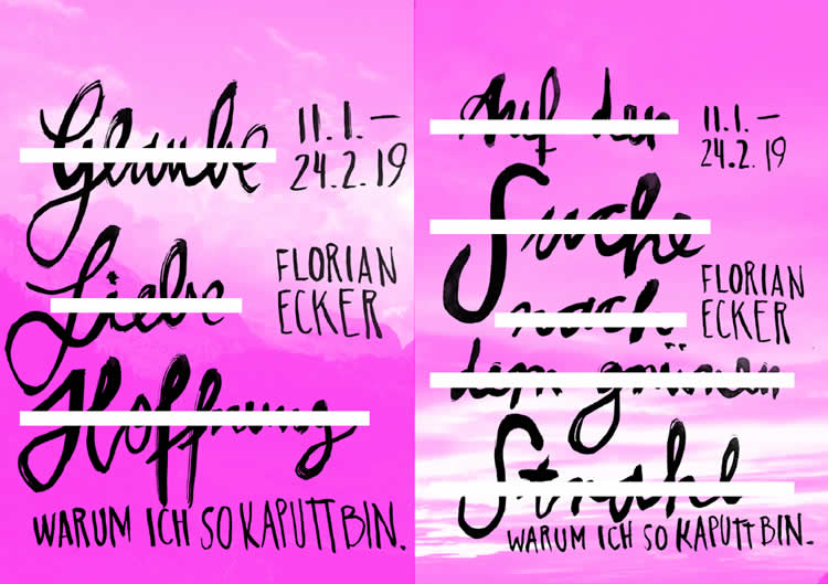 Die Ausstellung zum Jahresbeginn widmet sich in in besonderer Weise Künstler/innen widmen, die auf Grund einer z.B. mehr als zehnjährigen künstlerischen Tätigkeit über ein breites Werk verfügen, das deshalb zur ver- tiefenden Diskussion anregt. Eckers Arbeiten sind wie Spuren, die entstehen, während er persönlichen Beobachtungen Erfahrungen und Empfindungen nachspürt. Sie bewegen sich frei zwischen den verschiedenen Medien und sind nicht immer eindeutig visuell greifbar. Sie sind die Umsetzungen komplexer, persönlicher Gedanken und Ideen des Künstlers und spielen auf sensible Weise mit Erwartungen, Sinnen und subjektiven Bildwelten der Betrachterinnen und Betrachter. (Text: Julia Weiß)