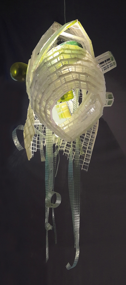 Christian Wichmann reizt es, Alltagsobjekte, die ansonsten auf ihren Gebrauchswert reduziert sind, in einen ästhetischen Kontext zu transformieren. Dem Betrachter eröffnet sich so eine neue Beziehung zu den recycelten Objekten, die er mit farbigem Glas, Acrylglas, Kabelbindern, Schläuchen etc. bereichert.