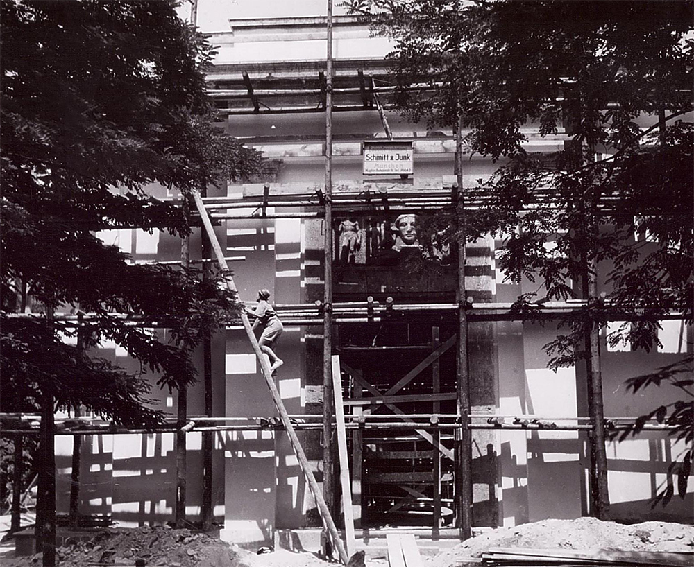 Der Kunstpavillon feiert dieses Jahr sein 70jähriges Jubiläum. Dies nehmen wir zum Anlass uns intensiv mit der Geschichte des im Nationalsozialismus geplanten Gebäudes und seiner Umgebung zu befassen. Dabei ist der gewerkschaftliche Hintergrund des Kunstpavillons, der auf Selbstverwaltung und Selbstorganisation von Künstler*innen aufbaut, Ausgangspunkt unserer Herangehensweise. Denn unser Jubiläum bezieht sich auf den von gewerkschaftlich-organisierten Künstler*innen bis 1950 abgeschlossenen Wiederaufbau des im Krieg beschädigten Gebäudes.